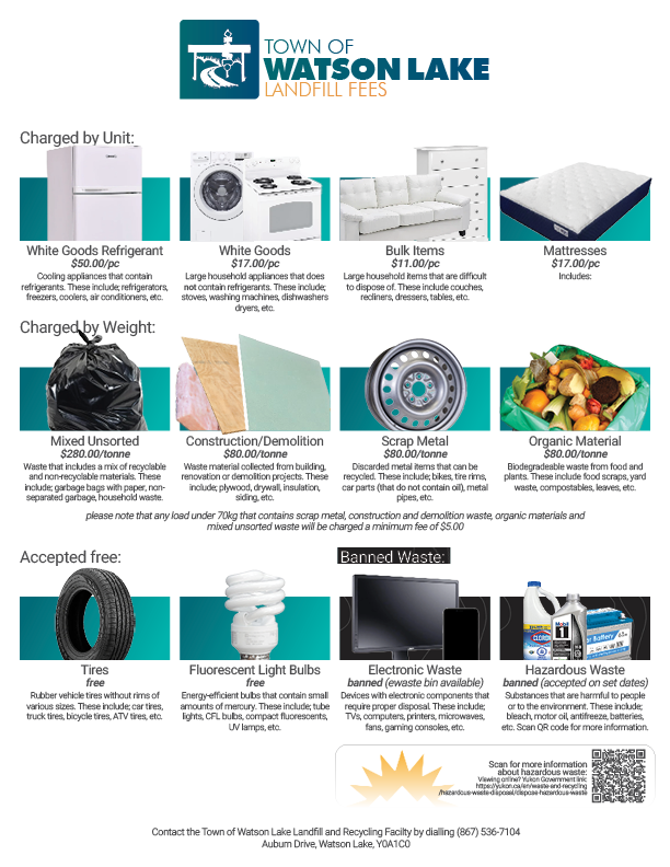 As a sub-department of Public Works, the Solid Waste Department manages the Town of Watson Lake’s landfill and recycling facility. Reporting to the Director of Operations, the team is responsible for weekly household garbage collection, overseeing recycling operations, and managing tipping at the landfill. Their services are essential to maintaining a clean, healthy, and environmentally conscious community.